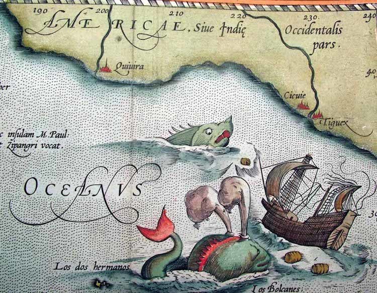 Perhaps this tradition was influenced by Greco-Roman images of mythological animals. However, Ortelius was one of the last cartographers who agreed to include them in his cards. The Atlas of Theatrum Orbis Terrarum was published at a time when cartographers began to prefer science and accuracy instead of aesthetics.