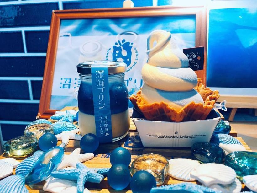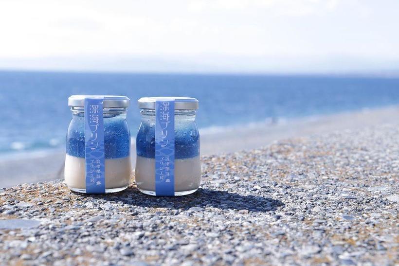 An unusual dish was invented in the city of Numazu, which stands on the Pacific Ocean. Undoubtedly, Numazu is known for its delicious seafood, as well as for its stunning views of Suruga Bay. But recently the city has become popular thanks to the special dessert that is produced here – Deep Sea Pudding. This pudding at first glance may seem too strange, because it is blue. So what attracts travelers to it?